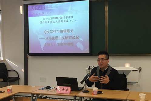 王宏宇首先以《学术交流》为例讲解了人文社科学术期刊的六个基本标筛选标准:学术性、规范性、自洽性、创新性、前沿性和现实性。他特别强调,不能将跟风与前沿混淆,不能盲从“潮流”,要明确自己的研究方向;马克思主义学科更要明确本学科存在的意义与价值,对中国特色社会主义建设中的重大的理论和现实问题给予具有马克思主义理论学科的特征的回答。